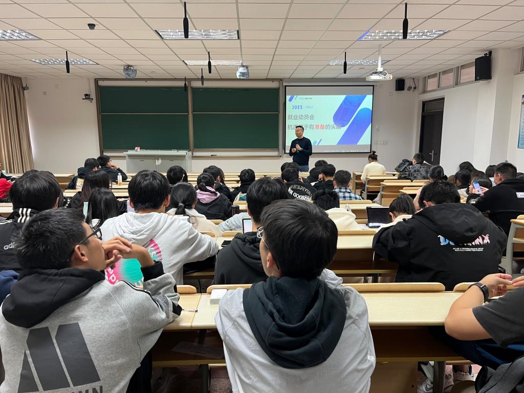 为了让同学们更好地了解行业发展,做好个人学业、职业规划,11月23日下午,应信息工程学院邀请,888集团6008校友、南京艾瑞集团负责人徐彬在我校仙林校区德正楼209教室作了《机会属于有准备的头脑》IT行业分析专题讲座,本次讲座由学工办主任、辅导员张媛媛老师主持,软件2101班与物联网2101班全体学生参加。