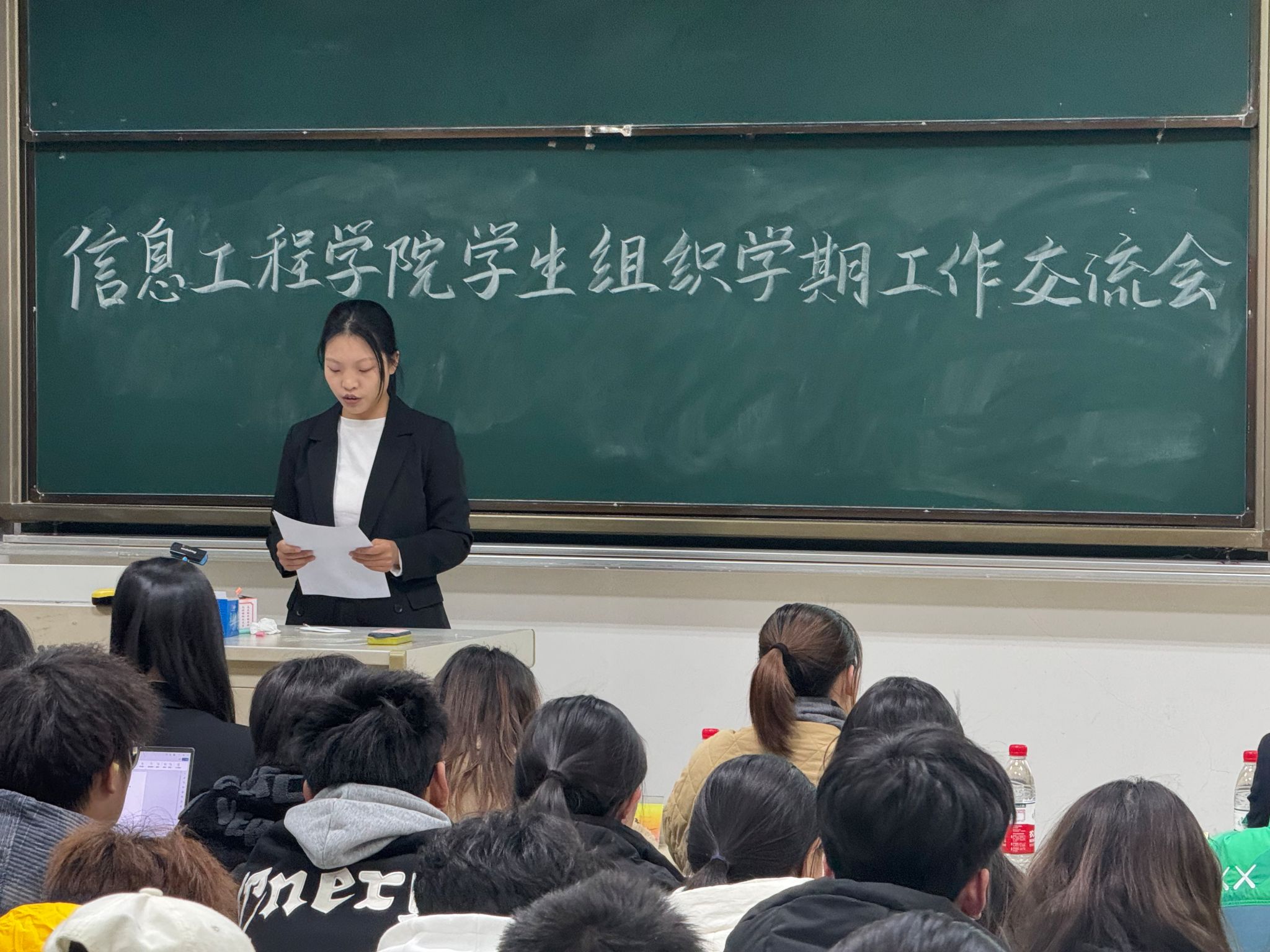 为总结本学期分团委、学生会工作情况,促进部门间工作交流,2024年12月9日,信息工程学院学生组织学期工作交流会于德业楼118教室举行。院团委书记郭秀芳老师、法学院学生会主席陈钱颖、信工院学生会主席肖逸玲、信工院学生会主席邵晨晨、信工院学生会主席韦欣茹、信工院团委副书记(学生)李晓寒、信工院团委副书记(学生)袁超、各班级代表及分团委、学生会全体成员参加会议。