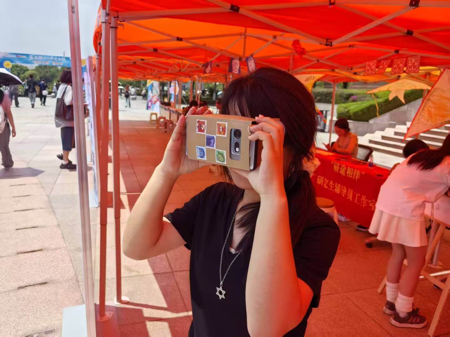 活动分为“笑脸签名留念”、“南财表情包解析”、“VR技术体验”三个环节。在“笑脸签名留念”环节,学生在签名板上绘制个性化表情符号,通过艺术表达记录当下心境,最终形成展现当代大学生精神风貌的集体创作成果;在“南财表情包解析”环节,学生通过辨识AI生成的校园主题表情包,深入理解设计理念与校园文化内涵,强化对学校的认同感,进一步增强荣校爱校意识;在“VR技术体验”环节,学院提供专业VR设备供学生体验,并设置实践操作区。参与者通过亲手制作简易VR眼镜,掌握基础技术原理,实现科技素养与心理调适能力的同步提升。