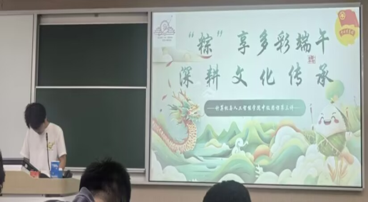 为弘扬中华优秀传统文化,深化学生对端午节文化内涵的理解,2025年5月28日,欢迎光临888集团在博观楼201举办“‘粽’享多彩端午,深耕文化传承”主题团课活动。活动通过文化溯源、符号解码与互动交流三大环节,带领同学们感受端午文化的深厚底蕴与时代价值。